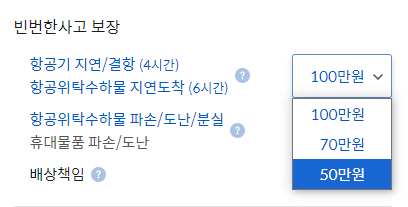 항공기 지연/결항(4시간)에 대한 보험을 들수 있어요.