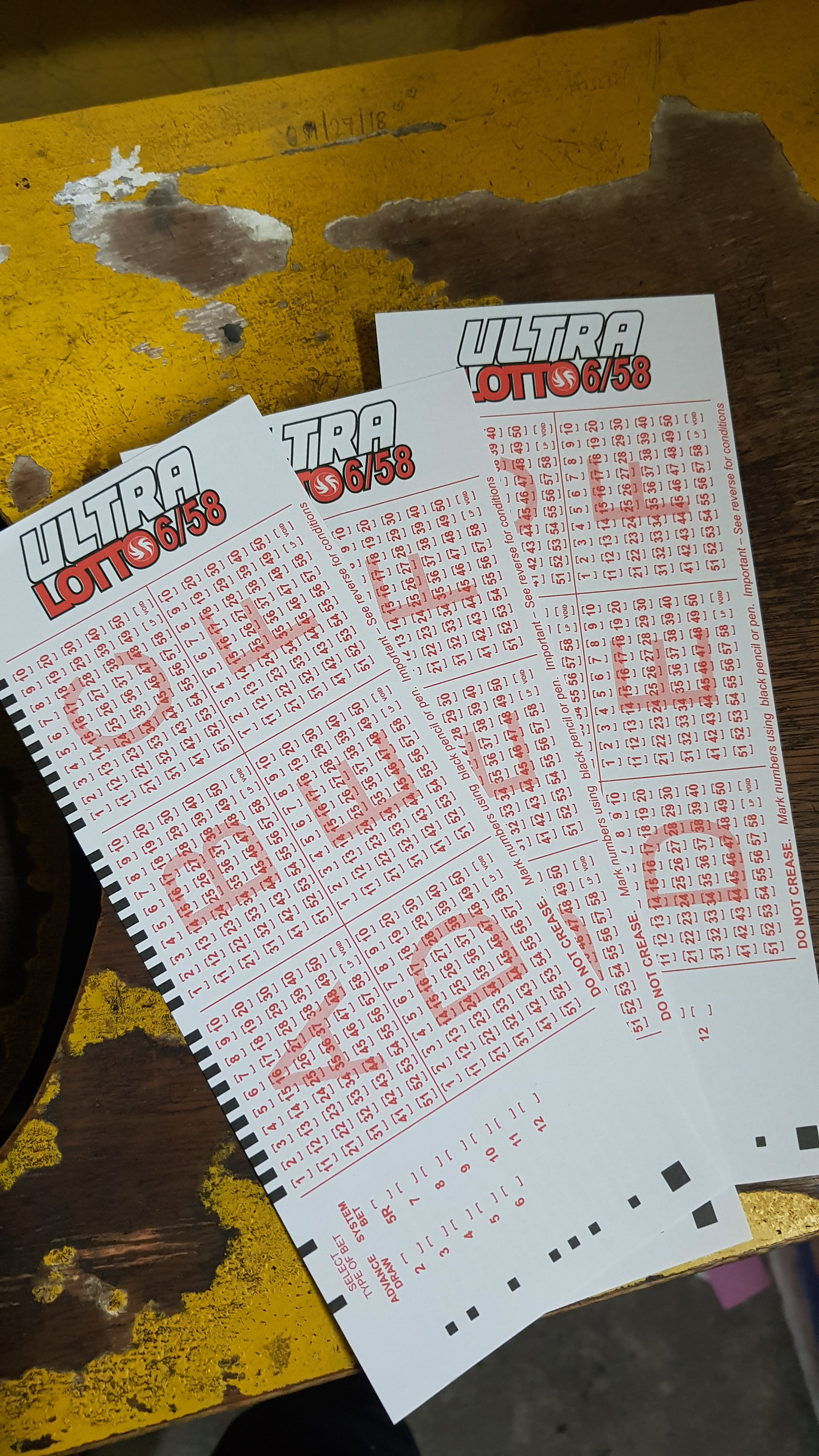 저는 이날 가장 높은 당첨금을 자랑하는 ULTRA LOTTO 6/58 를 구입 및 선물 했습니다.